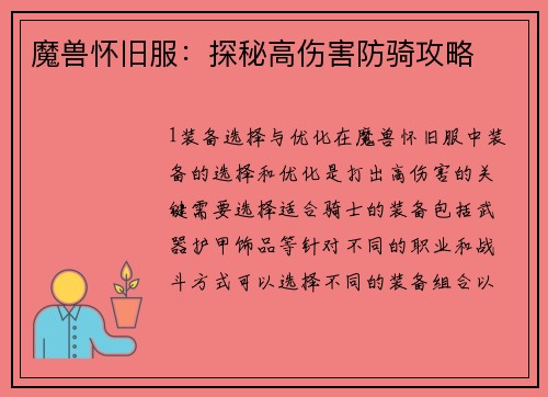 魔兽如何重置装备属性 引言 魔兽世界是一款备受玩家喜爱的大型多人在线角色扮演游戏。在游戏中,装备是玩家提升角色实力的关键之一。随着游戏版本的更新和玩家需求的变化,装备属性可能会变得不再适合当前的战斗需...